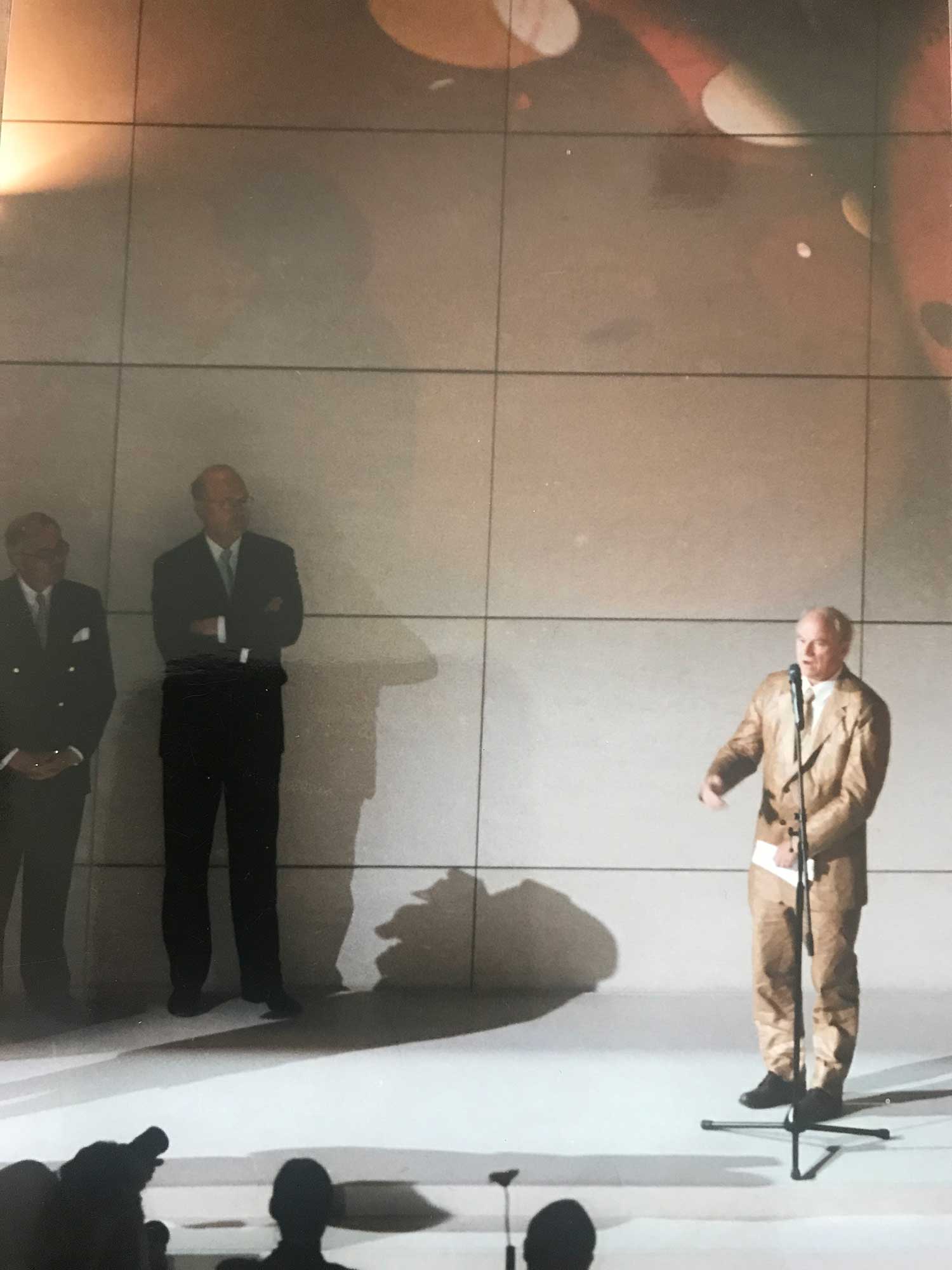 LR—I was doing some research on this before we gathered to talk, looking for event photos of someone wearing the suit at that time, and the only photo I could find of someone wearing it was from some society magazine from Alberta, Canada, and the article was, ’90s Supermodels: Where Are They Now?’ And there was a photo of a male model, probably at the Hugo Boss event, wearing the paper suit… So he wore it!