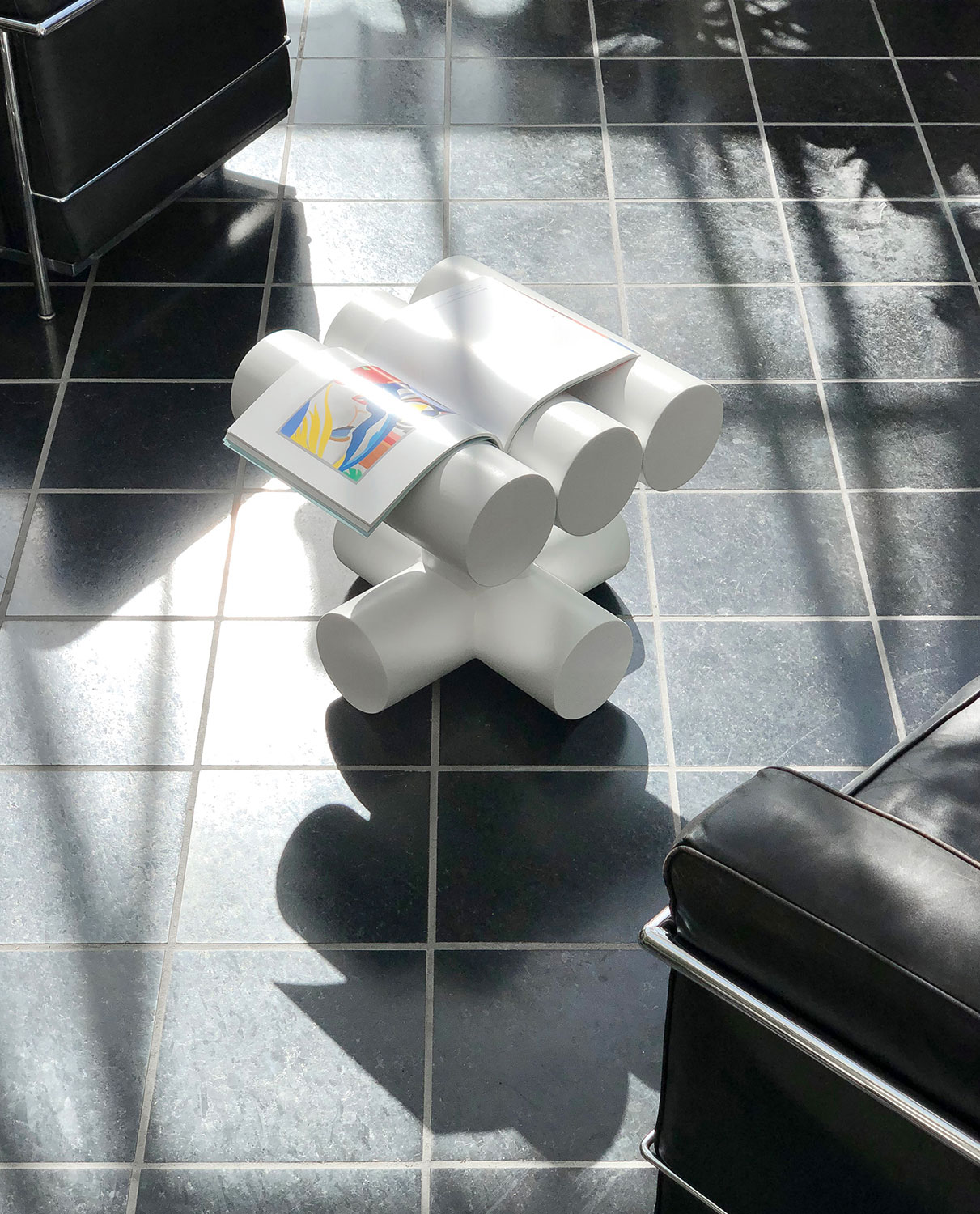 Itaewon Chair is the first furniture from Common Accounts. A stool and small coffee table, it is welded in the manner of urban roadside barricades that populate the streets and laneways of Seoul. Set down across its surface, a hardcover book provides a flat tabletop. Laid open, the table’s tubes display the spread of your choice, or simply hold your place like a bookmark.